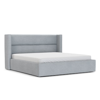 The CEO of dreamland. This generous wing-backed headboard has some pretty high expectations of your REM cycle. Upholstered with a linen-blend and padded with dense foam, the Calabri bed also features a generous upholstered base. Talk about an elevated aesthetic.