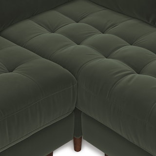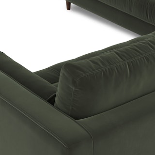 How does a person balance extravagance and practicality? With a velvet sectional sofa, obviously. With lux brushed velvet, loose back cushions and bolsters, and solid wood legs, there’s a reason this is our most popular sofa. A corner blocked wooden frame and slim walnut legs make for a sturdy and stylish movie-watching companion — pair with a smattering of tropical plants and coffee in a pretty mug.