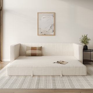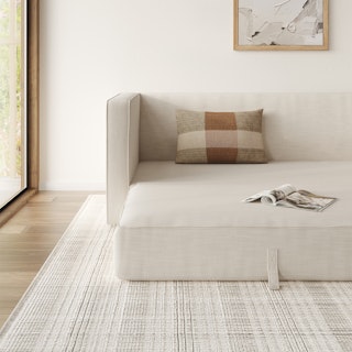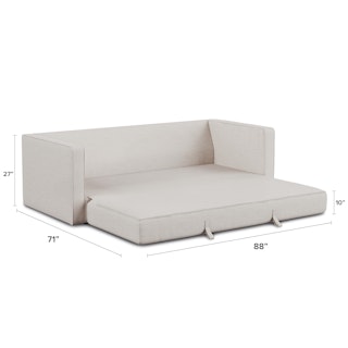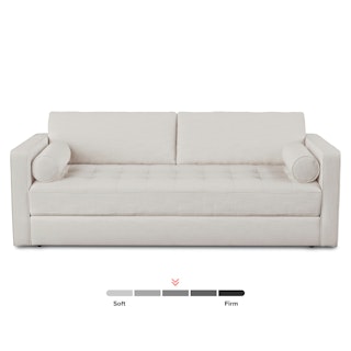 Ever looked at our best-selling Sven and thought “Huh, this thing looks so comfy, I wish they made a Sofa Bed version”. Well, dream no longer. The Sven Sofa Bed is here to make all your slumber-themed dreams come true. The Sven Sofa Bed is Indistinguishable from the rest of the collection, with its signature tufted bench seat, overstuffed cushions, and round bolsters still present. But now, simply grab the two pulls on the backside of the seat cushion and unfold the mattress for a seamless transition—Classy timeless couch to snoozeland in seconds, what's not to love?