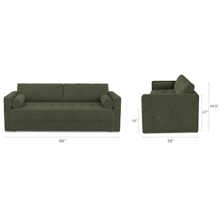 Ever looked at our best-selling Sven and thought “Huh, this thing looks so comfy, I wish they made a Sofa Bed version”. Well, dream no longer. The Sven Sofa Bed is here to make all your slumber-themed dreams come true. The Sven Sofa Bed is Indistinguishable from the rest of the collection, with its signature tufted bench seat, overstuffed cushions, and round bolsters still present. But now, simply grab the two pulls on the backside of the seat cushion and unfold the mattress for a seamless transition—Classy timeless couch to snoozeland in seconds, what's not to love?
