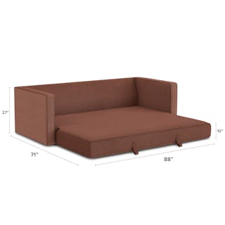 Ever looked at our best-selling Sven and thought “Huh, this thing looks so comfy, I wish they made a Sofa Bed version”. Well, dream no longer. The Sven Sofa Bed is here to make all your slumber-themed dreams come true. The Sven Sofa Bed is Indistinguishable from the rest of the collection, with its signature tufted bench seat, overstuffed cushions, and round bolsters still present. But now, simply grab the two pulls on the backside of the seat cushion and unfold the mattress for a seamless transition—Classy timeless couch to snoozeland in seconds, what's not to love?