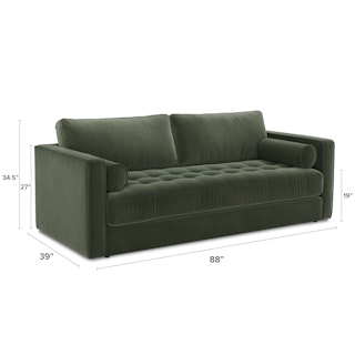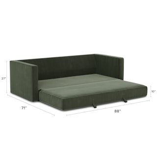 Ever looked at our best-selling Sven and thought “Huh, this thing looks so comfy, I wish they made a Sofa Bed version”. Well, dream no longer. The Sven Sofa Bed is here to make all your slumber-themed dreams come true. The Sven Sofa Bed is Indistinguishable from the rest of the collection, with its signature tufted bench seat, overstuffed cushions, and round bolsters still present. But now, simply grab the two pulls on the backside of the seat cushion and unfold the mattress for a seamless transition—Classy timeless couch to snoozeland in seconds, what's not to love?