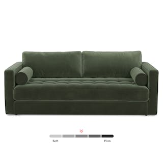 Ever looked at our best-selling Sven and thought “Huh, this thing looks so comfy, I wish they made a Sofa Bed version”. Well, dream no longer. The Sven Sofa Bed is here to make all your slumber-themed dreams come true. The Sven Sofa Bed is Indistinguishable from the rest of the collection, with its signature tufted bench seat, overstuffed cushions, and round bolsters still present. But now, simply grab the two pulls on the backside of the seat cushion and unfold the mattress for a seamless transition—Classy timeless couch to snoozeland in seconds, what's not to love?