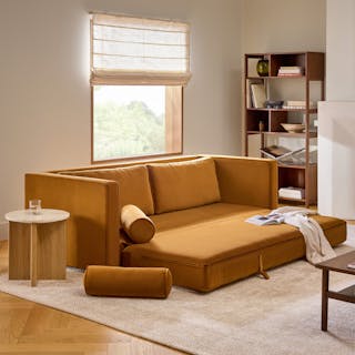 Ever looked at our best-selling Sven and thought “Huh, this thing looks so comfy, I wish they made a Sofa Bed version”. Well, dream no longer. The Sven Sofa Bed is here to make all your slumber-themed dreams come true. The Sven Sofa Bed is Indistinguishable from the rest of the collection, with its signature tufted bench seat, overstuffed cushions, and round bolsters still present. But now, simply grab the two pulls on the backside of the seat cushion and unfold the mattress for a seamless transition—Classy timeless couch to snoozeland in seconds, what's not to love?
