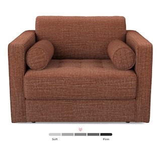 You know what they say: if you can't beat 'em, make the extremely cozy lounge chair into a sleeper lounge. People kept falling asleep on the Sven, so we've cut out the middle man and made the Sven Sleeper Lounge Chair. A tufted seat, precise piping, and round bolster pillows, plus! Plus! A fold out mattress so you can take your Sven lounge into a Sven nap. Stick that in your living room and sleep on it.