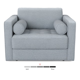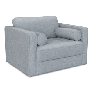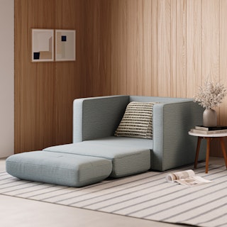 You know what they say: if you can't beat 'em, make the extremely cozy lounge chair into a sleeper lounge. People kept falling asleep on the Sven, so we've cut out the middle man and made the Sven Sleeper Lounge Chair. A tufted seat, precise piping, and round bolster pillows, plus! Plus! A fold out mattress so you can take your Sven lounge into a Sven nap. Stick that in your living room and sleep on it.