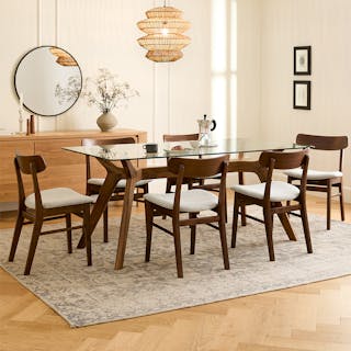 When we say "keep it light" this is what we mean: the Emmer and the Fonra, together in your dining space. Both built from solid wood, this table-and-chairs set works beautifully together because they establish a nice foundation for dinner without adding a lot of visual weight.