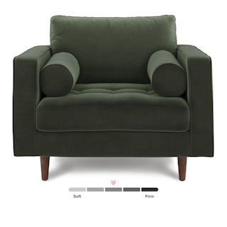 It’s called a throne, and you look great on it. Our most popular sofa is reimagined as a large, cozy lounge chair. Lean back on the luxuriously stuffed back cushion and round bolsters, resting assured that you can fluff and adjust to your heart’s content. Whatever you do, feel like royalty in your home atop this modern take on a mid-century classic.