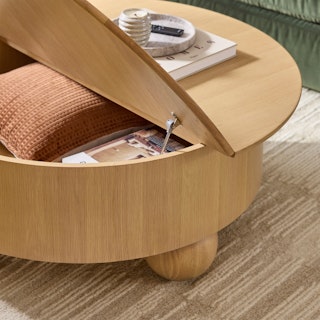 It's a statement piece, not a stage. While we don't condone standing on the Sigrid coffee table (it's really not made to bear human weight), we absolutely condone standing out. With striking spherical legs and a drum-like base, the Sigrid doubles as sneaky storage with a flap-style lid. Hide your velvet trimmed cape, your finery, your collection of feathered hats. Sigrid was born for the spotlight, so put her in the center of your living room and let her shine.