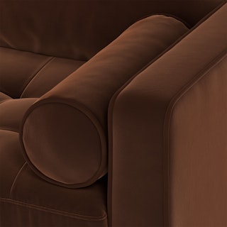 Maximum mid-century appeal. With its plush back cushions, bolsters made for regal lounging, and tufted bench seat, this velvet version of our Sven Sofa puts your calm, cool, creative style on display. This piece is poised on a wooden block frame and upholstered in soft brushed velvet. Pair this piece with a good book: the perfect combo for unwinding after a long day.