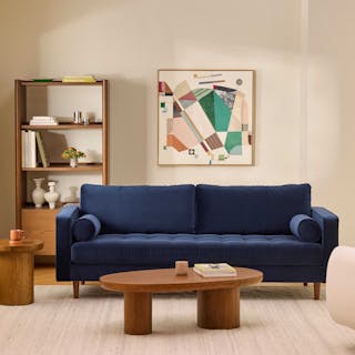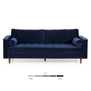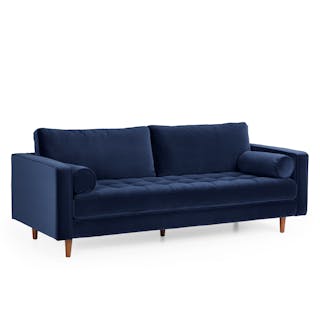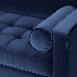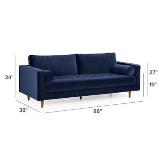 Maximum mid-century appeal. With its plush back cushions, bolsters made for regal lounging, and tufted bench seat, this velvet version of our Sven Sofa puts your calm, cool, creative style on display. This piece is poised on a wooden block frame and upholstered in soft brushed velvet. Pair this piece with a good book: the perfect combo for unwinding after a long day.