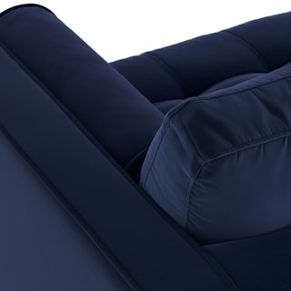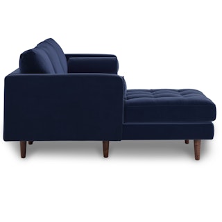 How does a person balance extravagance and practicality? With a velvet sectional sofa, obviously. With lux brushed velvet, loose back cushions and bolsters, and solid wood legs, there’s a reason this is our most popular sofa. A corner blocked wooden frame and slim walnut legs make for a sturdy and stylish movie-watching companion — pair with a smattering of tropical plants and coffee in a pretty mug.
