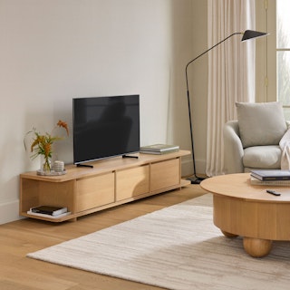 Nestled low beneath your television, this understated beauty may steal your attention. With its beveled edges and slim, elegant profile, Judith is a true show-stopper. Maintain your lounge's set design with Judith's discreet cable management, and keep that dusty old BlueRay player behind solid wood doors.