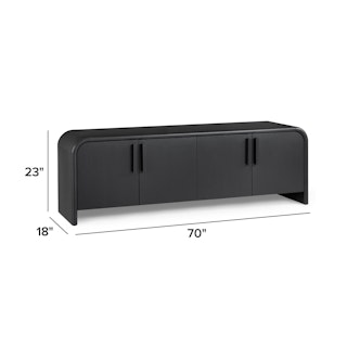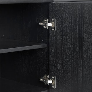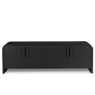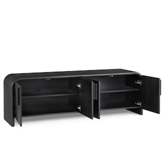 A media unit that's ahead of the curve. The Faydra is media storage at its most avant garde. With a unique sloping design, sleek cupboards, and thoughtful adjustable shelving, the Faydra is a statement-making storage solution. Finished with a veneered exterior and sculptural solid-wood handles, the Faydra shows us what attention-to-details looks like.