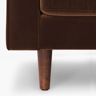 How does a person balance extravagance and practicality? With a velvet sectional sofa, obviously. With lux brushed velvet, loose back cushions and bolsters, and solid wood legs, there’s a reason this is our most popular sofa. A corner blocked wooden frame and slim walnut legs make for a sturdy and stylish movie-watching companion — pair with a smattering of tropical plants and coffee in a pretty mug.