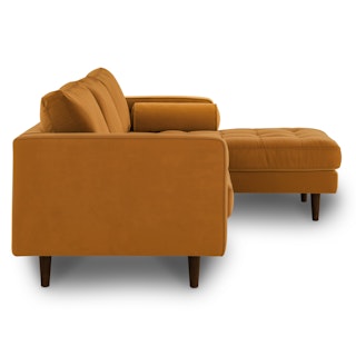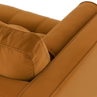How does a person balance extravagance and practicality? With a velvet sectional sofa, obviously. With lux brushed velvet, loose back cushions and bolsters, and solid wood legs, there’s a reason this is our most popular sofa. A corner blocked wooden frame and slim walnut legs make for a sturdy and stylish movie-watching companion — pair with a smattering of tropical plants and coffee in a pretty mug.