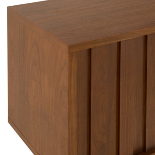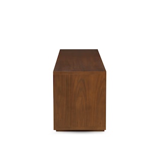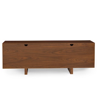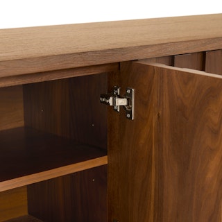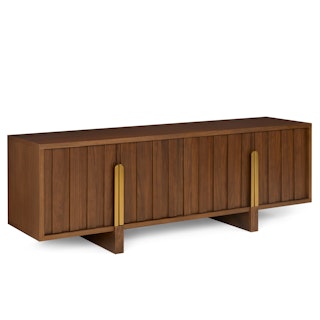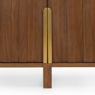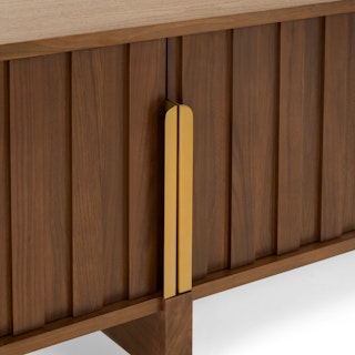 Give your television the throne it deserves. Sat atop its sled base, Felix commands attention and admiration with its classic walnut finish and brushed brass door handles. Mind you; Felix doesn't just have great style — cable management holes, adjustable shelving, and soft-close doors mean Felix can can hold every gaming console with elegance and ease.