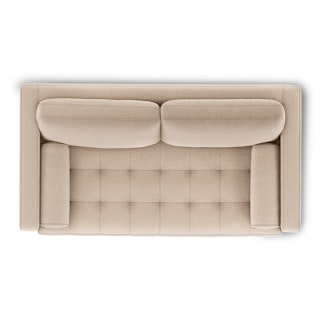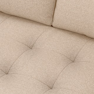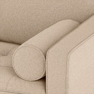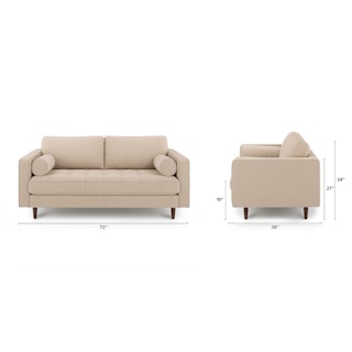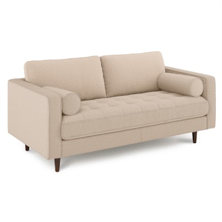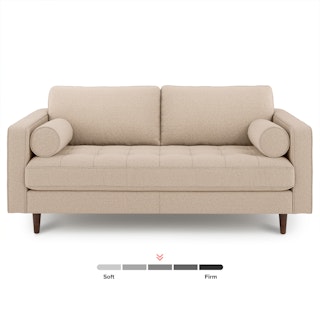 Our most popular sofa, reimagined for apartment living. This modern take on a mid-century classic features clean lines, a tufted benchseat, and luxuriously stuffed back cushions. Two matching round bolsters complete the look.