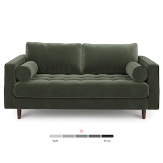 Our most popular sofa, reimagined for apartment living. This modern take on a mid-century classic is built on a corner-blocked solid wood frame and features loose bolsters and back cushions, making this little stunner easy to clean. Tuck it into a nook or make it the main event of your space. It’s destined to be a star.