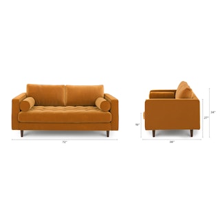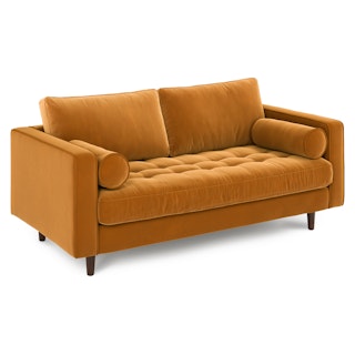 Our most popular sofa, reimagined for apartment living. This modern take on a mid-century classic is built on a corner-blocked solid wood frame and features loose bolsters and back cushions, making this little stunner easy to clean. Tuck it into a nook or make it the main event of your space. It’s destined to be a star.