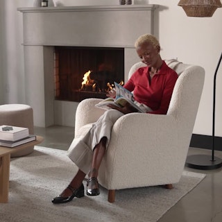 Come movie night, everyone will be eyeing a spot on the Archie. With its high back, supportive arms, and textured curly threads, it's like a big bear hug — without the claws. A generous seat depth built upon a slightly reclined back and seat? Say no more; we'll take two.