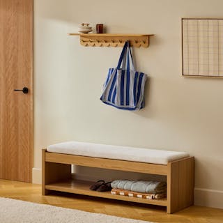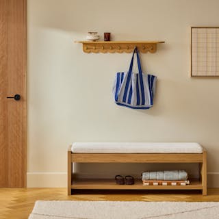We get it; storage isn't the most fun thing to purchase for your home. But the Shelly collection? Well, that's another story. With an elegant scalloped design and brushed brass hooks, the Shelly collection brings joy and sophistication to an otherwise neglected area of the home. Plus, you'll feel a little joy when hanging up your coat—that's always nice.