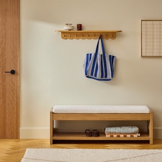 We get it; storage isn't the most fun thing to purchase for your home. But the Shelly collection? Well, that's another story. With an elegant scalloped design and brushed brass hooks, the Shelly collection brings joy and sophistication to an otherwise neglected area of the home. Plus, you'll feel a little joy when hanging up your coat — that's always nice.