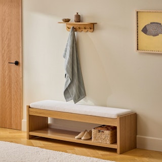 Shelly 24.5" Shelf and Coat Rack - Brass and Oak