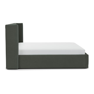 The CEO of dreamland. This generous wing-backed headboard has some pretty high expectations of your REM cycle. Upholstered with a linen-blend and padded with dense foam, the Calabri bed also features a generous upholstered base. Talk about an elevated aesthetic.