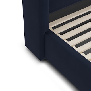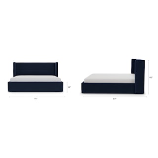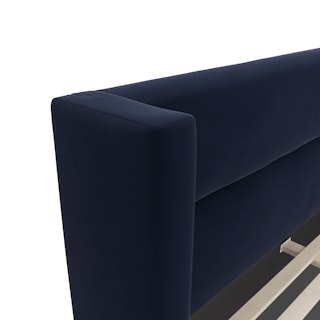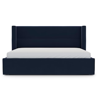 The CEO of dreamland. This generous wing-backed headboard has some pretty high expectations of your REM cycle. Upholstered in our durable Hale velvet and padded with dense foam, the Calabri bed also features a generous upholstered base. Talk about an elevated aesthetic.