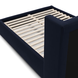 The CEO of dreamland. This generous wing-backed headboard has some pretty high expectations of your REM cycle. Upholstered in our durable Hale velvet and padded with dense foam, the Calabri bed also features a generous upholstered base. Talk about an elevated aesthetic.