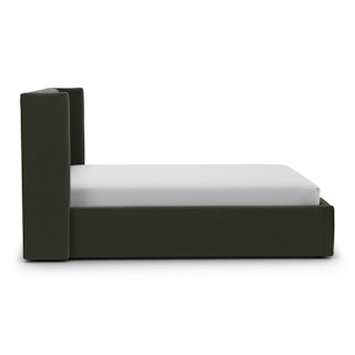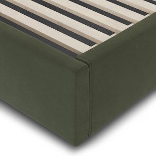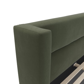 This bed is gorgeous. The material is soft and plush, and adds a luxurious feel to our bedroom. It was worth the wait!
