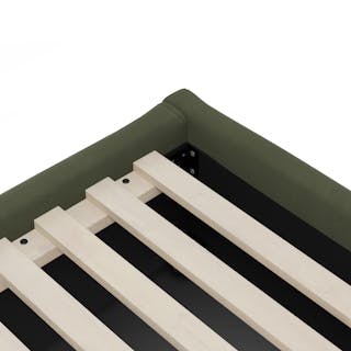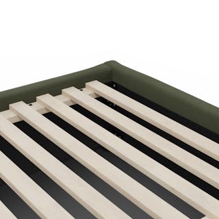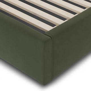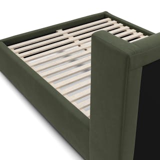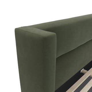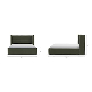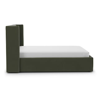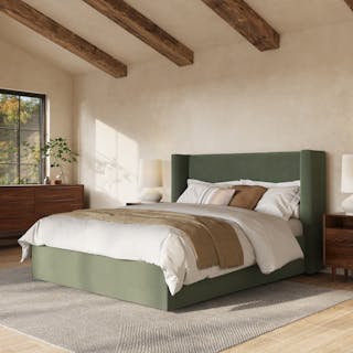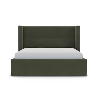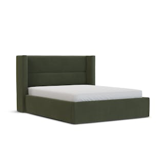 The CEO of dreamland. This generous wing-backed headboard has some pretty high expectations of your REM cycle. Upholstered in our durable Hale velvet and padded with dense foam, the Calabri bed also features a generous upholstered base. Talk about an elevated aesthetic.