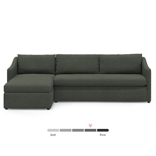 A minimal look with maximum impact... and maximum function. The Landry Sofa Bed marries laid back comfort with elegant details to produce a sofa that is as comfortable hosting movie night as it is your in-laws. Sloping sleigh-style arms and clean, straight lines make it simple to pair this sofa with many styles. With a spacious chest hidden below its chaise seat, and pull-out memory foam mattress, this sofa bed is compact, functional, and comfortable. Almost too comfortable.