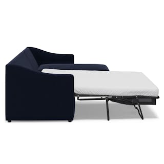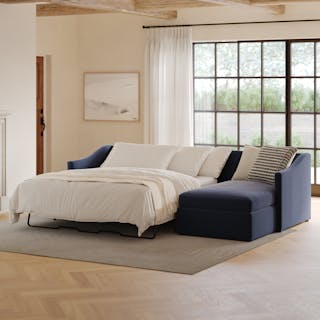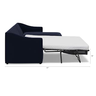 A minimal look with maximum impact... and maximum function. The Landry Sofa Bed marries laid back comfort with elegant details to produce a sofa that is as comfortable hosting movie night as it is your in-laws. Sloping sleigh-style arms and clean, straight lines make it simple to pair this sofa with many styles. With a spacious chest hidden below its chaise seat, and pull-out memory foam mattress, this sofa bed is compact, functional, and comfortable. Almost too comfortable.