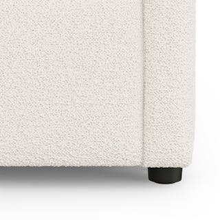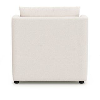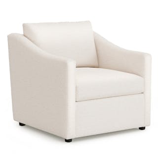 - Upholstered in a soft, non-absorptive bouclé fabric. Bouclé is an excellent choice for those who want an easy-to-care-for, style-forward lounge chair