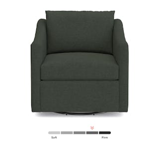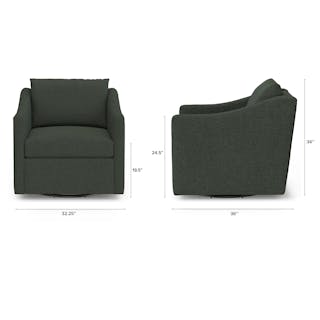 A minimal look with maximum impact... The Landry swivel chair marries laid-back comfort with practical swivel functionality. The result? A lounge chair that's as comfortable hosting movie night as it is cocktail hour. With its sloping sleigh-style arms and clean and straight lines, set atop a 360-degree swivel base, it is a versatile piece that pairs with various interior design styles. Whether against a warm white backdrop, a boldly patterned rug, or draped with your favorite blanket, the Landry adapts to your unique style, adding a touch of easygoing elegance to any setting.