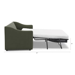 A minimal look with maximum impact... and maximum function. The Landry Sofa Bed marries laid back comfort with elegant details to produce a sofa that is as comfortable hosting movie night as it is your in-laws. Sloping sleigh-style arms and clean straight lines make it simple to pair this sofa with many styles. Topped with a memory foam mattress, this sofa bed is compact and comfortable. Almost too comfortable.