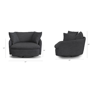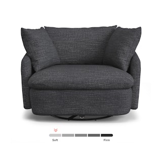 Cloud kingdom, population: you. The Leigh Grand swivel chair is the bigger brother, boasting an extra 14" in seat depth alone — nap central, we know. With thoughtful details that make it the perfect place to put your feet up and read/watch a show/stare into the middle distance. Upholstered with stain-resistant Napa fabric, the Leigh is here to help you rest easy.