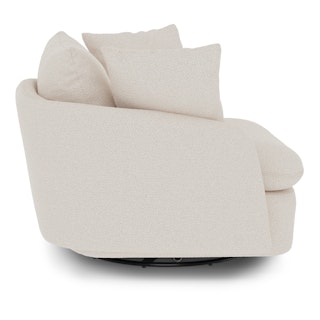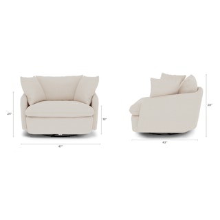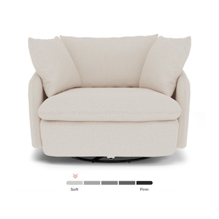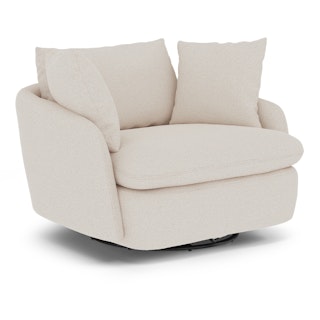 Cloud kingdom, population: you. The Leigh Grand swivel chair is the bigger brother, boasting an extra 14" in seat depth alone — nap central, we know. With thoughtful details that make it the perfect place to put your feet up and read/watch a show/stare into the middle distance. Upholstered with our ever-so-soft bouclé fabric, the Leigh is here to help you rest easy.