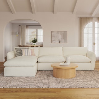 Cloud kingdom, population: you. The Leigh sofa is our comfiest sofa ever, with thoughtful details that make it the perfect place to put your feet up and nap/read/watch a show/snuggle/stare into the middle distance. Three seat styles mean you can build the perfect spot to crash, and gently angled armrests make it easy to relax without immediately falling asleep. Upholstered with our ever-so-soft bouclé fabric, the Leigh is here to help you to rest easy.