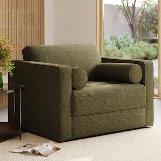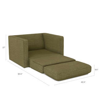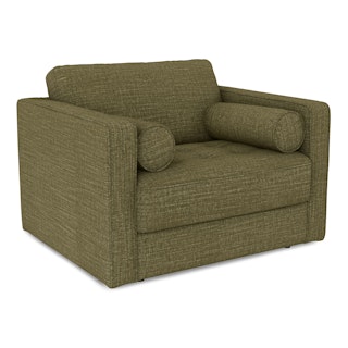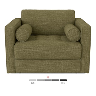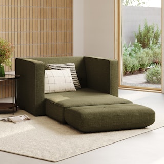 You know what they say: if you can't beat 'em, make the extremely cozy lounge chair into a sleeper lounge. People kept falling asleep on the Sven, so we've cut out the middle man and made the Sven Sleeper Lounge Chair. A tufted seat, precise piping, and round bolster pillows, plus! Plus! A fold out mattress so you can take your Sven lounge into a Sven nap. Stick that in your living room and sleep on it.
