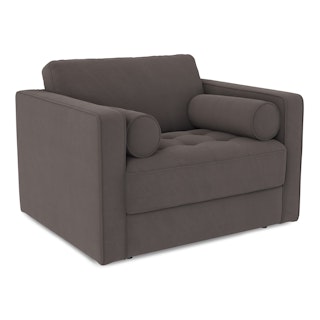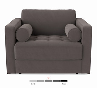 You know what they say: if you can't beat 'em, make the extremely cozy lounge chair into a sleeper lounge. People kept falling asleep on the Sven, so we've cut out the middle man and made the Sven Sleeper Lounge Chair. A tufted seat, precise piping, and round bolster pillows, plus! Plus! A fold out mattress so you can take your Sven lounge into a Sven nap. Stick that in your living room and sleep on it.