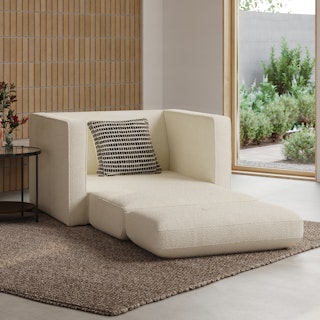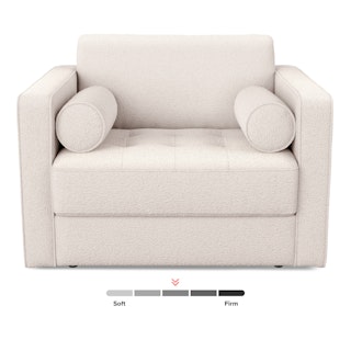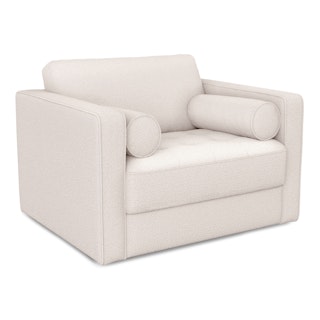 You know what they say: if you can't beat 'em, make the extremely cozy lounge chair into a sleeper lounge. People kept falling asleep on the Sven, so we've cut out the middle man and made the Sven Sleeper Lounge Chair. A tufted seat, precise piping, and round bolster pillows, plus! Plus! A fold out mattress so you can take your Sven lounge into a Sven nap. Stick that in your living room and sleep on it.