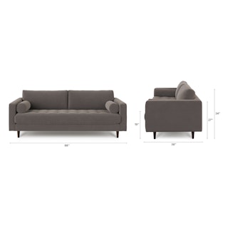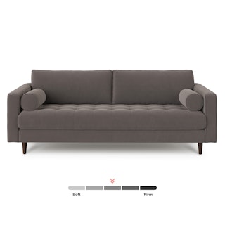 There’s a reason this is our most popular sofa. This modern take on a mid-century classic features crisp lines, a tufted benchseat, and two luxuriously stuffed back cushions. Two matching round bolsters complete the look.
