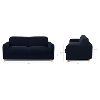 Vati 80" Velvet Sofa Bed - Natural Oak and Hale Ink