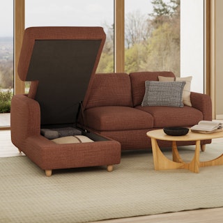 Super impressed with the fabric, fill and overall construction and design of this couch. The ottoman storage is so convenient, as well.