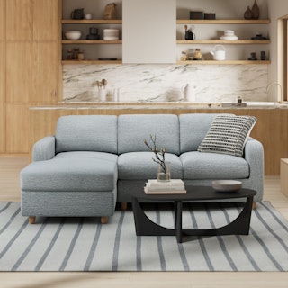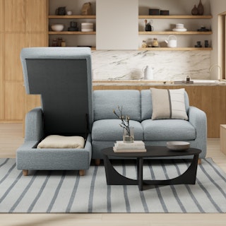 Super impressed with the fabric, fill and overall construction and design of this couch. The ottoman storage is so convenient, as well.