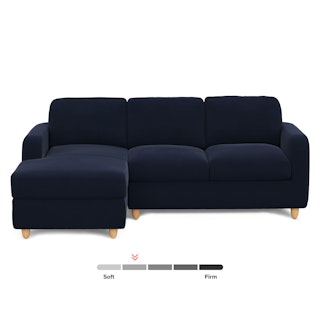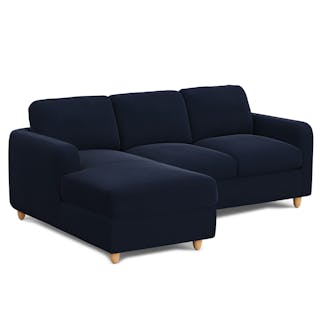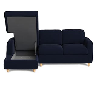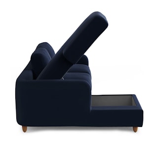 Vati 90.5" Velvet Left Storage Sectional - Natural Oak and Hale Ink