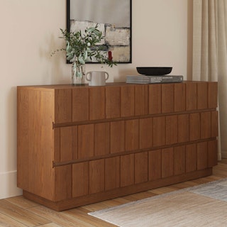 Marko knows it's handsome: it commands attention and will be the bold centerpiece your bedroom craves. The intricately carved solid wood drawer fronts, ample storage, soft-close drawers, and softened edges make up a functional, sophisticated, and handsome piece of furniture.